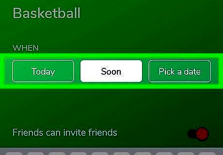 Select a date. Tap one of three options below "When". Tap Today to schedule an activity for today. Tap Soon if you don't yet have date in mind. Tap Pick a date to select a date from a calendar.