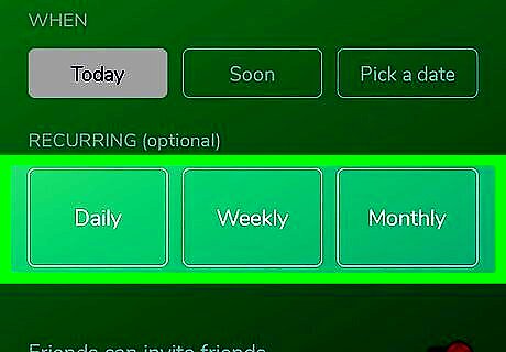 Make it a recurring activity (optional). If you want, you can tap Daily, Weekly, or Monthly to make this a recurring activity.