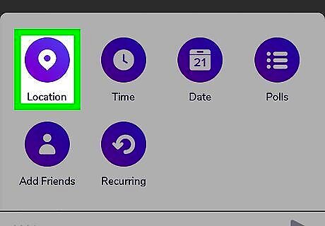 Tap Location. It's the icon that has an image of a Google Maps marker. This displays a Google map. If you have Locations turned on, you can tap Select this location to use your current location. You can also type an address in the search bar at the top and then tap Select this location.