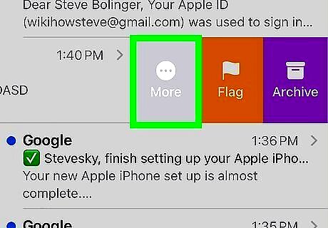 Swipe left on the email. You'll see options to "Flag," "Mute," and "More" appear.