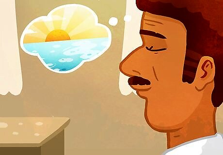 Distract yourself with other thoughts if you aren't able to leave. Do not think about whatever it is that is making you upset. Focus all of your attention on something else. The key is to think of something that is very specific and detailed. Think about a happy memory and all of the sights, sounds, and smells that you experienced during that time. List-making can be helpful as well. Go over your grocery list, a recipe, driving directions, or your family’s birthdays. List all the words you can think of for a particular letter. For instance, for the letter A, “apple, ant, artichoke, always” and so on. Try counting backwards from 100.