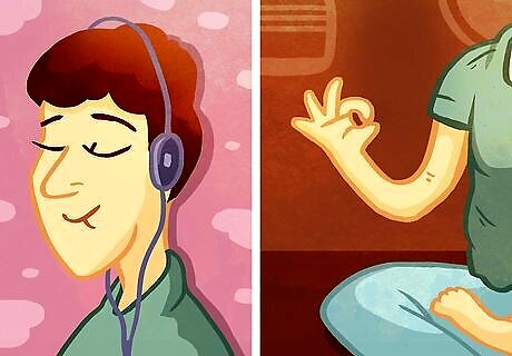 Decompress before a hard situation if you know it may make you cry. Some people become anxious before group meetings, evaluations, or presentations. If you know there are certain situations that tend to make you feel extra emotional, take about 10 or 15 minutes to decompress before the event. Listen to upbeat music that you enjoy. Watch funny videos on YouTube. Journal or color. Practice mindfulness to ground yourself in the present. Go for a walk to get some fresh air and clear your mind. Meditate.