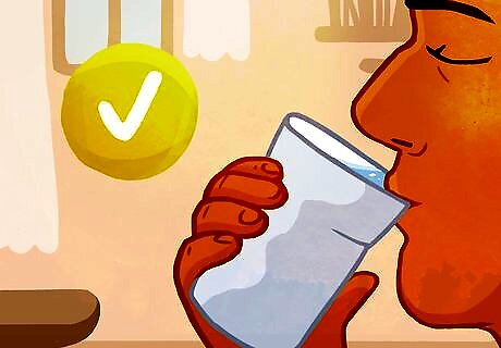 Drink some water to get rid of the lump in your throat. The swelling of the glottis in the back of your throat is a response from your nervous system during times of stress. Many people refer to it as “the lump in their throat.” You can feel it when you are nervous or when you are on the verge of crying. To get rid of it, try drinking some water. If you don’t have anything to drink, try swallowing your saliva hard or yawning.