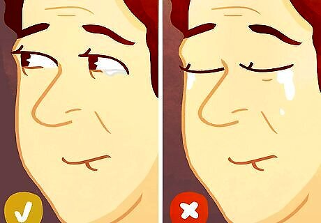 Try not to blink your eyes to prevent tears from forming. Blinking can cause more tears. (Think about your body’s reaction when you get something in your eye.) Open your eyes wide, and only do infrequent, slow blinks. You may not be able to do this very nonchalantly. Turn your head away from others if you can, or if you have a notebook handy, try using it to cover your face.