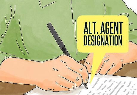 Designate an alternate agent. As a precaution, you should find someone willing to be an alternate agent. An alternate agent will become your primary agent if something happens to the first agent. While you want your initial agent to succeed and complete the tasks you are asking of them, things do happen and you want to make sure you have a backup plan.