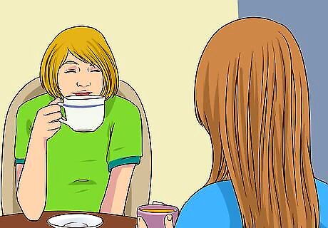 Hang out at a coffee shop. If you're feeling lonely and bored, get out of the house and meet up with someone. See if a friend wants to grab coffee. You don't have to spend a ton of money to simply chat with your friend over a cup of coffee, and good conversation can be a great means to lessen boredom. If no one's around to meet up, hit up a local coffee shop alone. You may find someone else hanging out solo and you can try striking up a conversation. This can both alleviate your boredom and help you make a new friend. You can make a comment on the shop. For example, "Wow, I really love the atmosphere in this place."