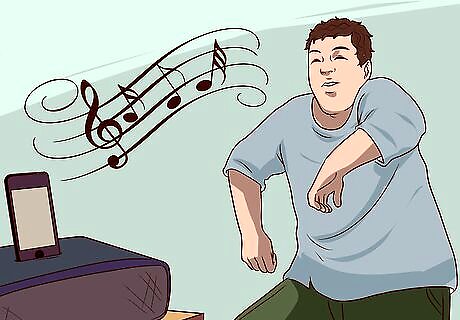 Dance. Turn on some music and start dancing around your living room. You don't have to worry about looking silly if no one is watching. Even if you don't usually like dancing, you may have more fun than you expect if you're just dancing alone for fun. If you're interested in learning how to dance, try watching someone online dancing videos and imitating the moves.