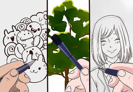 Doodle, paint, or sketch something. This is a great way to exercise your creativity. You'll also have something beautiful to show off when you're done. This can also help you build a new skill, which can be great to do when you're bored. Drawing or doodling may also increase your intelligence. Research suggests that doodling can help keep you focused and listening by engaging your brain. If you like to paint and draw, but aren't sure what to draw, try going outside and painting/drawing a still life of what you see. You can also draw or paint something interesting around your house. You can also draw or paint your favorite book or movie character if you want to use your imagination.
