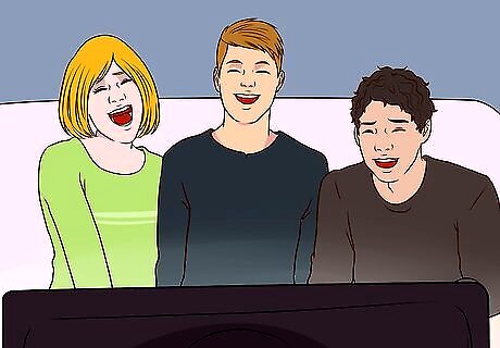Watch funny videos online. There are many comedians who operate YouTube channels and post funny content. You can also watch clips of standup comedians online. If you're feeling bored, try looking at funny content online. Laughter will make the hours pass by more easily. If you don't know where to start, a simple Google search for something like "best online comedians" or "funny videos" should yield plenty of results to keep you busy.