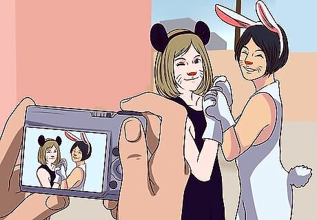 Have a photo-shoot. If you and your friends can't think of anything to do, put on some fancy clothes and makeup and have a photo-shoot. You can use a camera or smartphone to take pictures of you and your friends in a variety of poses. You can even go outside and take fun outdoor pictures. You don't have to do a serious photo shoot if you're not in the mood. You can take funny pictures to laugh at later.