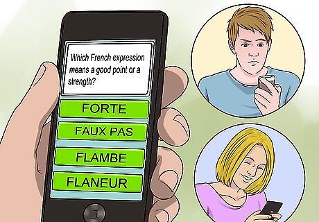 Play an online game with some friends. Some games, such as chess, checkers, or Monopoly, require other players. If you don't have anyone around, many phone apps and gaming consoles allow you to play with your friends online. You can also go online and find games to play. Many people play card games online, for example. Try some card games. Some can be played solo, such as Solitaire. Others, such as Uno or Slap Jack, require more people. Use your smartphone. Maybe all your friends have been playing a Trivia Game via your smartphone. Try seeing if any friends want to play right now. Reach out to friends via your game console. Many video game consoles allow you to play interactive games with other players.