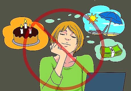Avoid daydreaming. Daydreaming about other places and more desirable activities will intensify boredom rather than alleviate it. Catching yourself in the middle of a daydream will likewise give you the impression that the activity you're engaging in is boring, even if you would normally find it stimulating. If you enjoy the occasional daydream, repetitive tasks like scrubbing the floor or mowing the lawn are a good opportunity for daydreaming. Tasks that require little "presence" won't be noticeably affected by daydreaming.