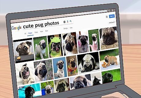 Look at funny or cute pictures online. The internet can be a great way to entertain yourself. Try googling something like, "Cute pug photos" and spend some time looking at adorable pictures of dogs. You can also browse videos of cute animals or babies to pass the time. If you're talking to a friend who is also bored, you guys can share video clips and photos you find of cute things online.