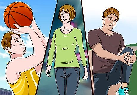 Get in a daily workout. Keeping your body active will help keep your mind active. This may help ease up the boredom. You don't have to do a strenuous activity, such as playing basketball, in order to get active. It can be as simple as taking a walk. If you're bored, making the most of the time by getting some exercise in can help. Go to the park and skateboard, play basketball or soccer/football, jog, or practice tennis. If you don't like being very active, or haven't been active in awhile, go for a walk around the block, downtown, or to the park. If you are the artistic sort, you can also bring a camera or sketchbook to capture interesting moments. If it is warm, go for a swim. If it is rainy, try doing some stretches inside. This can easily be done indoors and will keep your body toned and healthy.