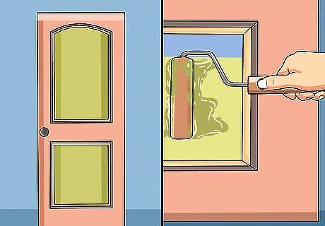 Paint the door with an oil-based primer. Paint the counters of the door with primer first, and then use a roller for the flat surfaces. Let the primer dry before painting. Your primer should be a similar shade to the final paint color. Make sure to use interior primer for your interior door.