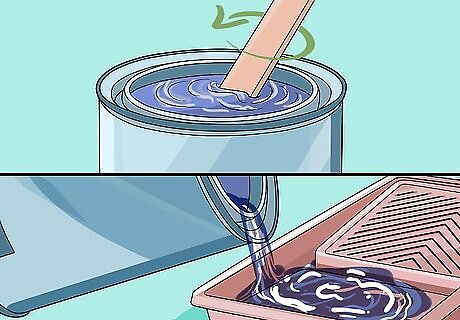 Stir your paint and pour it into a roller tray. Paint cans are usually pretty clearly marked if they are for exterior or interior use, so make sure you have interior paint before beginning. Stir the paint well using a stirring stick until it’s not separated and doesn't have lumps.