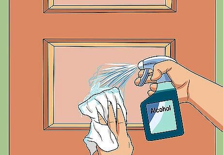 Protect the door hinges and knobs. You can either remove them, or cover them with rubber cement or tape. Make sure you keep the screws with the fixtures you have removed in a safe place, so that you'll be able to put them on again when you are done.