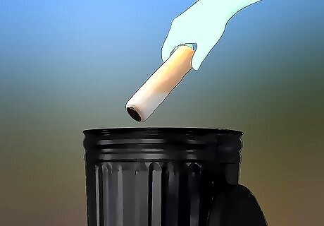 Store any extra paint. Leftover paint can be used to touch up any areas of the wall that become damaged in the future. First, wipe away any drips of paint along the rim or on the outside. Next, replace the lid and tap it into place with a hammer. Store the covered paint in a cool dry place, such as a basement or utility closet. You’ll need to shake the paint before using it again. Label the paint by writing on the lid with a permanent marker. Include the date and which room the paint was used in. If you store it properly, you can keep a gallon of paint for up to 5 years. If you do decide to toss out your old paint, fill the can with cat litter or paint hardening powder. Once the paint has hardened, you can just toss out the can.