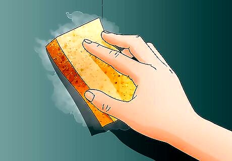 Clean the walls. Fill a large bucket with warm water and about a tablespoon of mild dish detergent. Next, dampen a large sponge in the soapy water, wring it out, and wipe it along the walls to clean them. Once the entire room has been cleaned, “rinse” the walls with a clean sponge and fresh water. Don’t saturate the walls with water, simply wipe away soap residue with a damp sponge. If there is grease on the walls (such as in a kitchen), use a degreasing product to remove it so the paint will adhere smoothly. Let the walls dry for an hour or two before continuing.