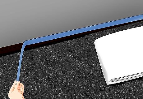 Cover your floors. If you drip paint onto your floor, it may be hard to remove. Protect your floors by covering them with a thick drop cloth or some newspaper. The covering should start at the base of the wall and extend out 2–3 feet (0.61–0.91 m). Secure the drop cloth or newspaper by taping it against the baseboards with painter’s tape. Make sure the painter’s tape doesn’t cover a part of the wall that you want to paint.