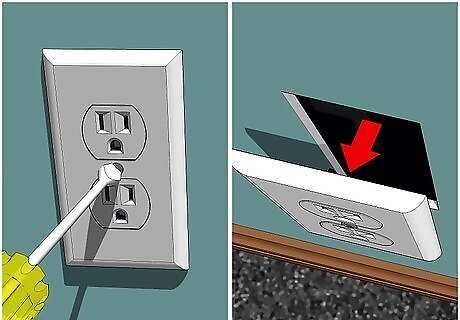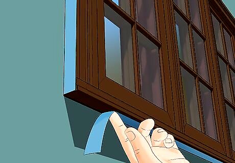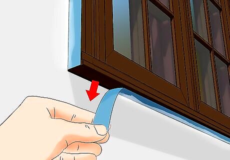 Tape the walls. While taping, use many small sections of tape instead of one large piece of tape. Use the tape to outline the area you want to paint and protect the areas that you don’t want to paint. For example, cover the bare light switches and outlets with a small strip to protect the wiring. Use a putty knife to press down on the edges of the tape so it adheres completely. Consider lining: Baseboards Wall trim Windowsills