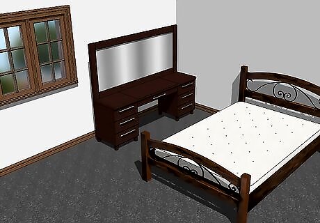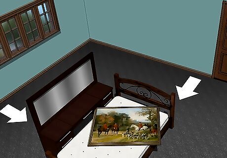 Protect your furniture from paint. Move all of your furniture away from the wall and towards the center of the room. You should have plenty of room to move around while you paint. Next, cover the furniture with large, plastic drop cloths. If you can’t move comfortably around the furniture pile, you may need to move some pieces to a different room.