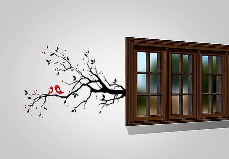 Apply wall decals. Wall decals can be used to add interesting designs to your walls. First, peel off the backing of the wall decal. Next, press the sticky side of the decal against the wall. Smooth out any wrinkles with your hand or a soft towel. Last, peel away the clear transfer paper. Don’t peel the transfer paper too quickly or you may damage the decal. Let the paint dry for 2-3 days before applying decals.