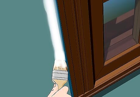 ”Cut in” with a paintbrush. Use a paintbrush to “cut in” the wall, or paint the edges. First, choose a large, angled paintbrush. Dip it into the paint bucket and wipe it along the edge to get rid of any excess paint. Next, paint about 4–5 inches (10–13 cm) along the edges of the wall using back and forth motions, framing the wall with a layer of paint. Cut in around any taped wall features as well. Let the paint dry to the touch before continuing.