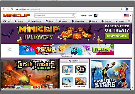 Play flash games in your browser on a popular gaming site. If you’re in the mood to play a game, there are plenty of games that are published online for you to play in your online browser. These games are typically called flash games, because they require Adobe Flash to run. Playing games is an excellent way to pass the time, especially if you find one that you really like!Tip: Flash games are a great way to pass the time, but the multiplayer games typically require a really strong internet connection. Some of the most popular flash gaming sites include Miniclip (https://www.miniclip.com/games/en/), Addicting Games (https://www.addictinggames.com/), and Armor Games (https://armorgames.com/).