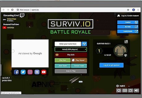 Find an io game you enjoy to scratch your competitive itch. Io games refer to simple multiplayer games that are extremely easy to learn. The gameplay is faster and more competitive than a standard flash game, but they tend to be quite simple. If you’re a naturally competitive person or aren’t very familiar with gaming, io games are a great way to pass the time. Examples include Surviv.io, which is a top-down style battle royale game, and Powerline.io, which is like a competitive version of the arcade game Snake. Play Surviv.io at http://surviv.io/, and Powerline.io at http://powerline.io/. Io games tend to require very little learning, but they can be quite difficult to master. These games are called “io” games because they tend to have websites that end in .io.