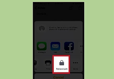 Select Remove Lock. This option is at the bottom of your screen. Tapping it will remove the lock from your selected note, meaning that you will no longer need to provide a password (or your fingerprint) to view or edit it.