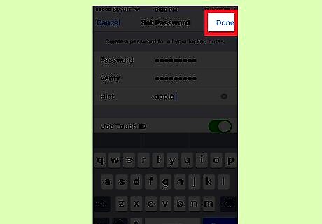 Tap Done. It's in the top right corner of your screen. After doing so, your password settings for the Notes app will be saved.