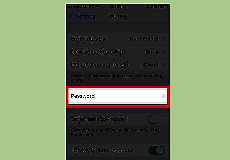 Tap Password. This is the fifth option down from the top of the Notes menu.