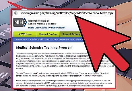 Apply for the Medical Scientist Training Program (MSTP). The MSTP is offered by the National Institute of General Medical Sciences, which is a branch of the NIH. The MSTP pays for tuition and provides a stipend plus money for equipment and supplies for candidates who wish to pursue a joint M.D. and Ph.D. degree in a variety of scientific and medical fields. For more information, including application information, you can find contact info for the MSTP here. Privately funded Non-MSTP programs also exist in the United States that pay all (or a portion) of tuition for D.O./Ph.D. and M.D./Ph.D. students as well. For those interested in other M.D./Ph.D. programs, a list of such programs listed by state is available here. Many of these programs offer stipends or full funding due to the rigorous course of study.