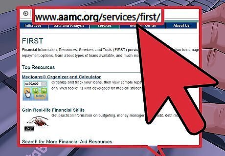 Take advantage of Financial Information, Resources, Services, and Tools (FIRST) services. The Association of American Medical Colleges (AAMC) has compiled a wide range of resources and tools collectively called FIRST. Here you can find a medical school financial aid toolkit, webinars regarding medical school loan debt, a loan organizer and calculator, and much more.