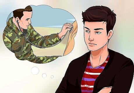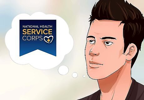 Consider military service. Though you may have to decide before finishing medical school, most branches of the military will pay some or all of your medical school tuition in exchange for the commitment to military service once you complete your education. The Air Force scholarship covers tuition, books, fees, and a living stipend. Students are required to work for one year for each year they received the scholarship with a minimum service requirement of three years. Active duty begins once internship and residency requirements have been met. The Army offers a full tuition scholarship for a variety of medical professions and also provides a $2,000 per month living stipend and a $20,000 signing bonus. In return, candidates must serve an equal number of years in the Army as they received the scholarship with minimums being determined by profession. The Navy offers a number of options to help pay for medical school, including scholarships and stipends for current students as well as loan repayment for existing medical professionals. Residents may also be eligible for supplemental income while they complete their training. Signing bonuses are available. Service requirements vary based on the type of tuition assistance received.