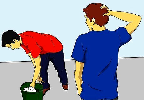 Rummage through the garbage to give it more of a random feel. Pull out the can form the trash bin.