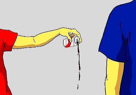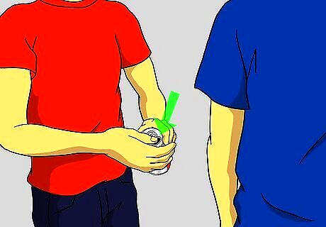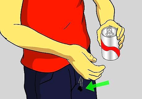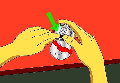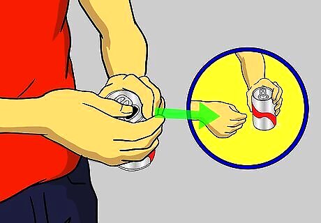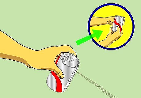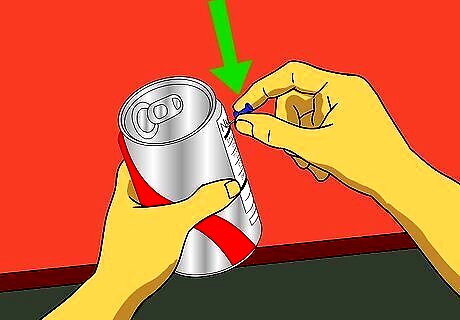 Let out about 1/3 of the soda from the can Lightly denting the sides.
