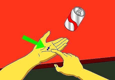 Rub the opening of the can (the paper) with your fingers.(If your fingers are a little bit damp, the paper top will adhere to your fingers.)rub the paper off and then finger palm it.