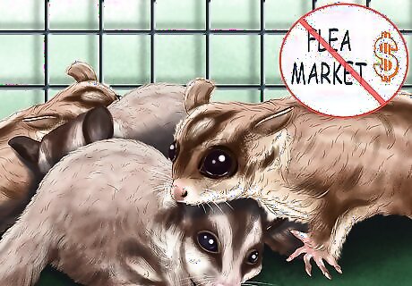 Stay away from flea markets and glider mills. Sugar gliders can be hard to find. If you can't find a breeder or pet store, you may be tempted to go through a mill or flea market. However, sugar gliders from such places are not bred responsibly. They are very prone to both health and behavioral problems. Avoid getting a sugar glider from a mill or flea market as he is less likely to be healthy.