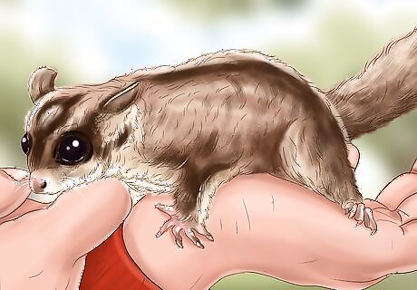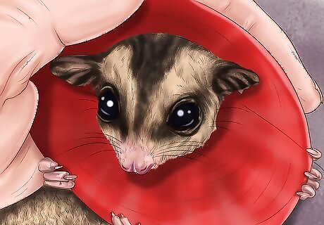 Do a nose-to-tail check. A good pet store or breeder will allow you to handle your sugar glider before purchase. When doing so, do a nose-to-tail check to make sure your glider's in good health. The eyes, nose, and ears should be clean and clear. There should be no discharge or unusual colors, as this indicates illness. Does the glider have all of its teeth? Is his mouth free of signs of infection? Do the glider's legs appear strong and free of injury? A sugar glider should be able to grasp with all four paws. Is his tail a normal length? Make sure there is no discoloration of staining around the rectum. This can indicate the glider has diarrhea, which may be a sign of a health problem.