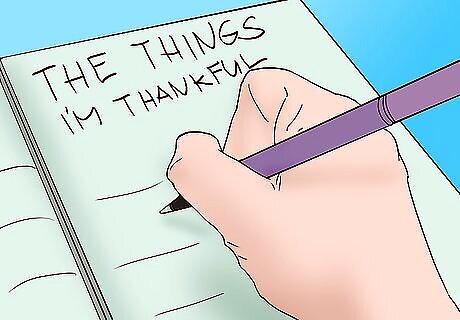 Write down what you are thankful for. Practicing gratitude every day can actually train your brain to start recognizing the positive in life instead of the negative. Try writing down 3 things you're grateful for and why every day. It also helps to think about the future and reflect on the past. Daily affirmations also have been proven to help general day-to-day mood as well as prevents stress.