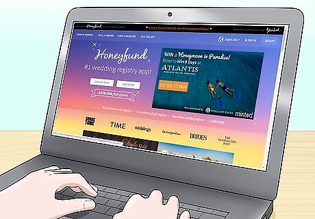 Opt for a honeymoon registry. A wedding registry can result in you getting a lot of material goods that you do not need. This can lead to waste. To start being socially conscious on your honeymoon, begin when planning your wedding. Have a honeymoon registry in place instead. You can request donations for your trip or items you will actually use. You can use websites, such as Honeyfund and Buy Our Honeymoon, to take donations. Let guests know you would prefer this over physical gifts. If you have a gift registration, try requesting gifts you will actually use on your honeymoon. For example, ask for things like cameras and hiking boots. This way, items you receive will not go to waste.