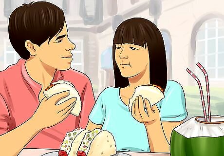 Eat locally. Whenever possible, support the community you're visiting. Stop by local farmer's markets and independent grocery stores. Eat at locally owned restaurants instead of chains. Not only will this support the local culture, you'll be able to try a variety of new cuisines.