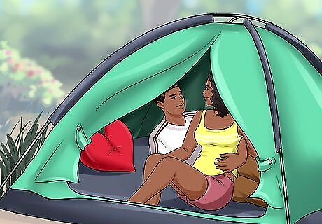 Look into options like camping. If you're the outdoors type, camping can be a great way to have a socially conscious honeymoon. You will not have to spend money and resources on a hotel and can enjoy the great outdoors. See if you live near any national parks and check camping regulations. You and your partner could go on a camping trip through a park and enjoy long hikes each day. When choosing camping supplies, always read the materials list. Make sure you're not buying supplies made with heavy use of plastic or chemicals.