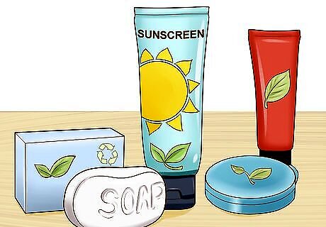 Use eco-friendly products during activities. You should always make sure the products you use are eco-friendly. Look for sustainable, organic materials whenever possible. Bring environmentally friendly products with you. For example, bring eco-friendly sunscreen, soap, clothing, and so on. If you need to purchase something on your trip, watch where you shop. Look for free trade stores that sell locally made organic products.