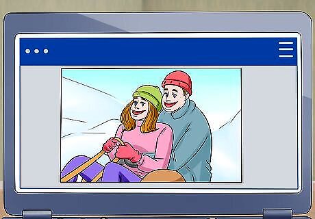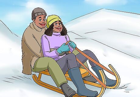 Go sledding or skiing. Skiing may be an activity that you enjoy with your partner, or you may have grown up doing it with your family. Consider having a few photos of you and your partner dressed up in skiing gear. If skiing isn't your thing, sledding can also make for fun photos.