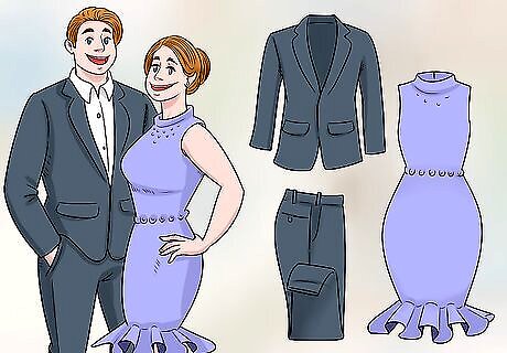 Dress up in cocktail attire. Winter is a popular time for holiday and cocktail parties. If you're taking photos inside, dress up in your best cocktail attire. You could wear a suit, or a dress with a pair of tights.