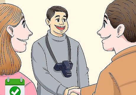 Set up the appointment early. Ideally, it is best to set up a photography session soon after your engagement. Factor in what you will be using the photos for. For example, consider if you will be using the photos for sending out announcements, or putting an announcement in the paper. Aim for the photography session to happen at least three months before the wedding. Consider the fact that the photographer will need some time to edit the photos when planning the session.