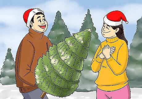 Include holiday scenes in your photos. Winter is a season full of holidays and festivities. If you celebrate Christmas, have the photographer take a picture of you and your partner picking out a tree. If you celebrate another holiday, take a photo of a moment that is a special part of that holiday for you. You can also plan photos for non-holiday festivities, such as ice skating and building a snowman.